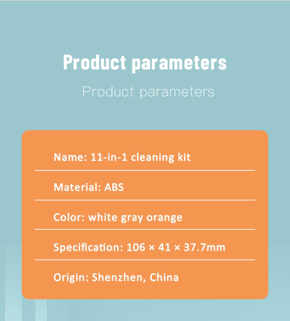 • Modular Kit: 11 cleaning components to meet different needs – from keyboards to earbuds.